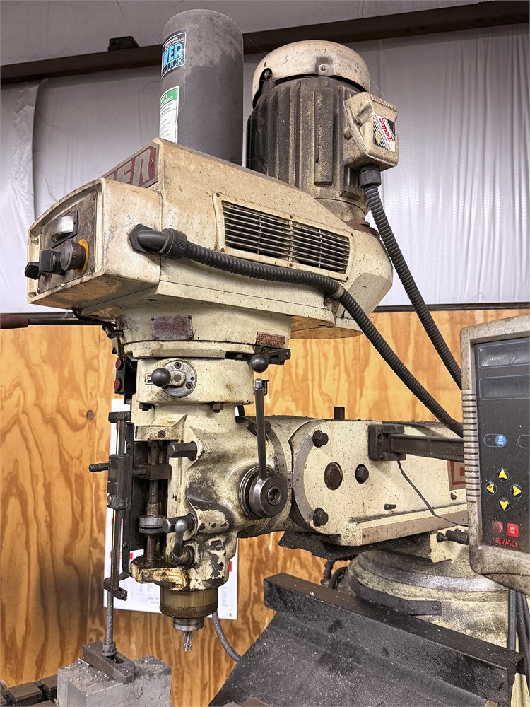60- 4500 (RPM) Speed Range, 33'' Adjustable e-Mill Throat, 18'' Stroke, 10'' x 54'' T-Slotted Table, 35'' Height Adjustable Saddle, Equipped w/ (2) A1-500 P, 110 V, 90 Watts 50/60 Hz, NEWALL C70 Digital Display & (1) KURT 6'' Machine Vise Approx. 19'' Opening
