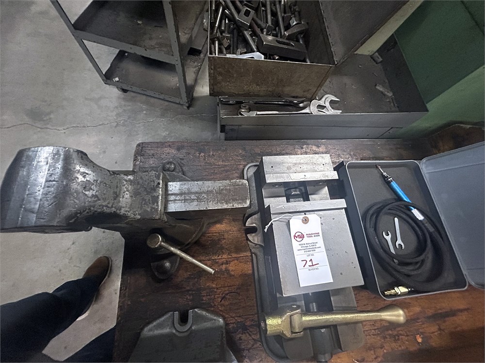 (1) 12" Wide Adjustable Table Vise W/ Locking Swivel and Replacable Jaws